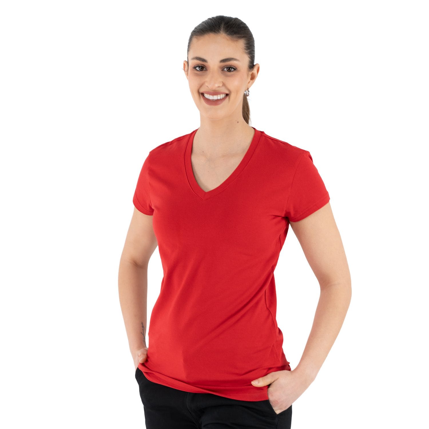 Nuestra camiseta de dama entallada, es una prenda que combina comodidad, estilo y una terminación de excelente calidad. Su corte femenino y moderno acompaña la silueta sin ajustar de más, logrando un calce elegante y favorecedor para el uso diario o laboral.